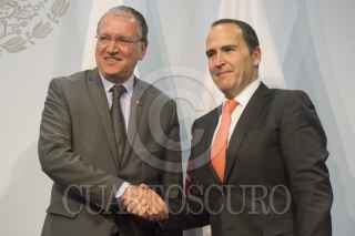 MÉXICO, DF., 31ENERO2014.- Miguel Ángel Margáin, director general del Instituto Mexicano de la Propiedad Industrial (IMPI), y Benoit Battistelli, presidente de la Oficina Europea de Patentes (EPO), acordaron intensificar la cooperación entre México y Europa en materia de patentes. Mencionaron que el objetivo de este acercamiento es compartir experiencias en torno a la concesión de patentes y otorgarse entre sí información acerca de patentamiento. Un aproximado de 15 mil patentes fueron tramitadas en México el año anterior, reveló el director del IMPI. FOTO: MARÍA JOSÉ MARTÍNEZ /CUARTOSCURO.COM