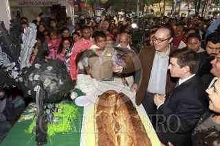 MÉXICO, DF., 31ENERO2014.- Ayer por la tarde, la “guajolota”más grande del Distrito Federal fue presentada por Mauricio Toledo, delegado de Coyoacán, en el marco de la Feria del Tamal en donde participan 12 países y 14 estados de la República con 150 variedades de tamales. El tamal es el platillo típico de la fiesta tradicional del Día de la Candelaria. Las dimensiones de la torta fueron de metro y medio por 50 cm. de ancho. La Fería del Tamal se realiza en la explanada del Jardín Hidalgo del 30 de enero al 02 de febrero, a partis de las 10:00 horas hasta las 21:00. FOTO: CUARTOSCURO.COM