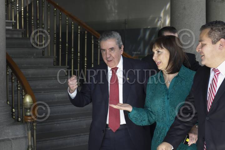 MÉXICO, D.F., 31ENERO2014.- Gustavo Madero, presidente del PAN, Santiago Vreel Miranda, ex senador y Rafael Tovar y de Teresa, presidente del Conaculta, se retiran del Alcázar del Castillo de Chapultepec, luego del que el Jefe del Ejecutivo Enrique Peña Nieto promulgara varias Reformas en Materia Político Electoral. FOTO: MOISÉS PABLO /CUARTOSCURO.COM