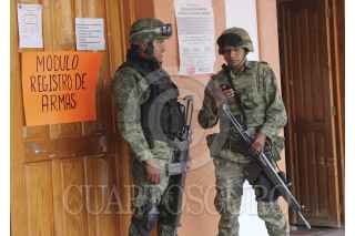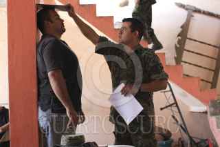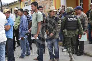 COALCOMAN, MICHOACÁN, 31ENERO2014. En el tercer día de registro, miembros del Ejército Mexicano continuaron con la afiliación de los grupos de autodefensa y se auxiliaron con un documento oficial para la acreditación de las armas que serán legales ante la Secretaría de Defensa Nacional (Sedena). FOTO: JUAN JOSÉ ESTRADA SERAFÍN /CUARTOSCURO.COM