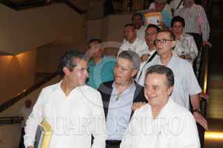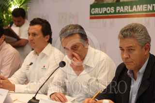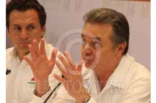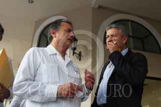 MERIDA, YUCATAN, 31ENERO2014.- Pedro Joaquín Coldwell, Secretario de Energia acompañado de David Penchyna Grub, presidente de la comisión de energía del Senado de la República a su salida de la IV plenaria de senadores del PRI y PVEM. FOTO: SAÚL LÓPEZ /CUARTOSCURO.COM
