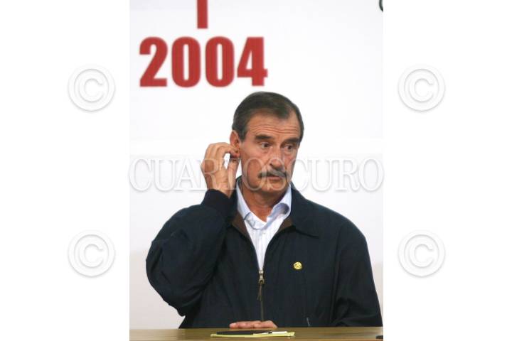 MÉXICO DF 30NOVIEMBRE2005ª- Victor Manuel Borras director General del Instituto del Fondo Nacional de la Vivienda para los Trabajadores INFONAVIT y el Presidente de la Republica Mexicana Vicente Fox, Eduardo Sojo Garza Aldape, Jefe de la Oficina de la Presidencia para las Políticas Públicas y Leon Halkin Bider, Presidente de la Confederación de Cámaras Industriales de los Estados Unidos Mexicanos, durante la clausura de la 89 Asamblea General del INFONAVIT FOTO: Leonardo Casas/CUARTOSCURO.COM