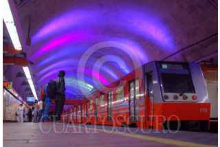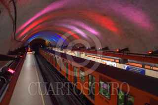 MEXICO, D.F., 03FEBRERO2014.- El Sistema de Transporte Colectivo (Metro) ilumino la estacion BArranca del Muerto, en el marco del dia mundial contra el Cancer. FOTO:ENRIQUE ORDOÑEZ /CUARTOSCURO.COM