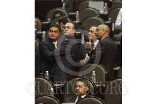 MÉXICO, D.F., 04FEBRERO2014.- Los diputados Luis Espinoza Chazaro, Luis Alberto Villareal, Manlio Fabio Beltrones y Marco Aguilar Vega, conversan durante el inicio de sesiones en la Cámara de Diputados. FOTO: MOISÉS PABLO /CUARTOSCURO.COM