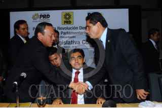 MÉXICO, D.F., 05FEBRERO2014.- Jesús Zambrano, presidente del PRD, Miguel Barbosa, coordinador de los senadores perredistas y Silvano Aureoles Conejo, coordinador de los diputados perredistas, presentaron su agenda legislativa conjunta en un hotel del Centor Histórico. FOTO: MOISÉS PABLO /CUARTOSCURO.COM
