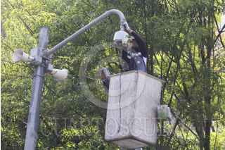 MÉXICO, D.F., 05FEBRERO2014.- un trabajador da mantenimiento a las cámaras de seguridad del C4 pertenecientes a la secretaria de Seguridad Pública del Distrito Federal. FOTO: SAÚL LÓPEZ /CUARTOSCURO.COM