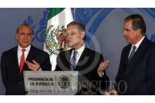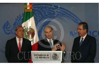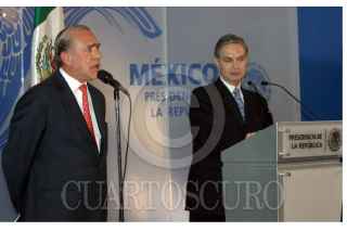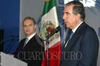 MEXICO, DF 30NOVIMBRE2005- El Secretario de Relaciones Exteriores Luis Ernesto Derbez ofreció una conferencia de prensa para conocer los logros obtenidos en política exterior con los nombramientos de Bernardo Sepúlveda, juez electo de la Corte Internacional de Justicia de La Haya y con José Ángel Gurría Treviño, secretario general electo de la Organización para la Cooperación y el Desarrollo Económico (OCDE). FOTO: Leonardo Casas/CUARTOSCURO.COM