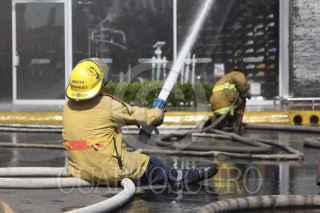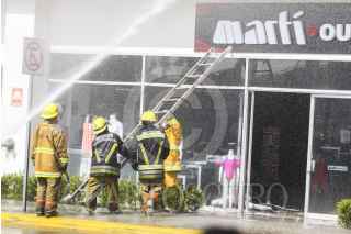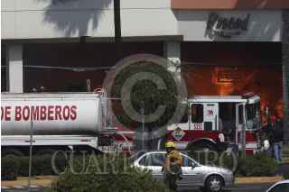 MÉXICO, DF., 06FEBRERO2014.- Un incendio se registró en la plaza comercial Sendero ubicada a un costado de la carretera México-Puebla desviación Ixtapaluca-Chalco. Personal de la SEDENA, Policía estatal, municipal, bomberos, paramedicos de la Cruz Roja y rescatistas del Estado de México y Distrito Federal acudieron a sofocar el fuego. El siniestro fue provocado por un corto circuito en una zapatería. FOTO: SAÚL LÓPEZ /CUARTOSCURO.COM