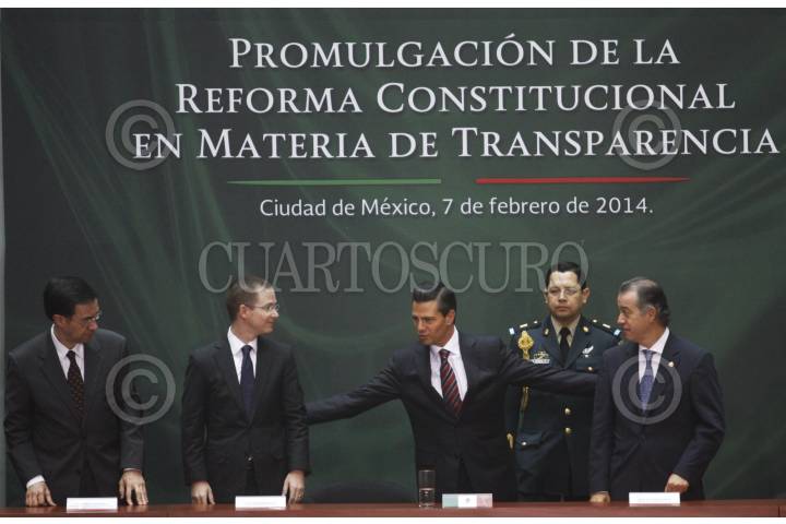 MÉXICO, D.F., 07FEBRERO2014.- Enrique Peña Nieto, Presidente de México, y Raúl Cervantes, presidente de la Cámara de Senadores, al finalizar la firma de promulgación de la reforma constitucional en materia de transparencia en el Palacio Nacional. FOTO: MOISÉS PABLO /CUARTOSCURO.COM