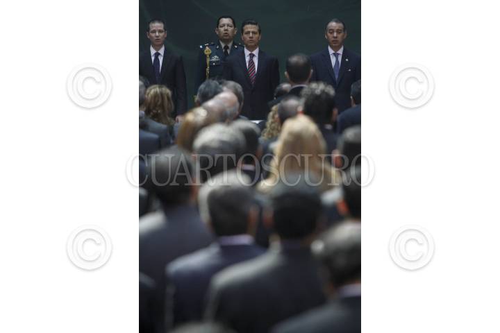 MÉXICO, D.F., 07FEBRERO2014.- Enrique Peña Nieto, Presidente de México, y Raúl Cervantes, presidente de la Cámara de Senadores, al finalizar la firma de promulgación de la reforma constitucional en materia de transparencia en el Palacio Nacional. FOTO: MOISÉS PABLO /CUARTOSCURO.COM