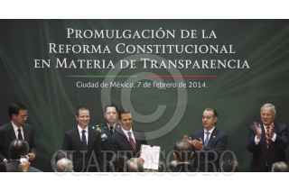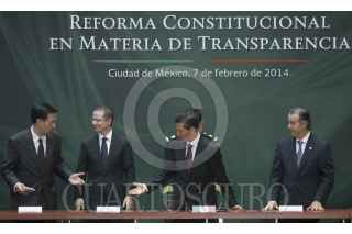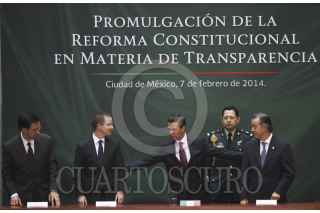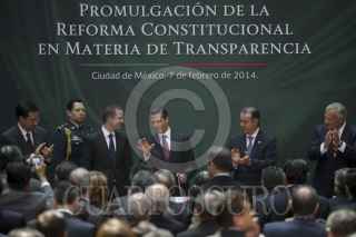 MÉXICO, D.F., 07FEBRERO2014.- Enrique Peña Nieto, Presidente de México, y Raúl Cervantes, presidente de la Cámara de Senadores, al finalizar la firma de promulgación de la reforma constitucional en materia de transparencia en el Palacio Nacional. FOTO: MOISÉS PABLO /CUARTOSCURO.COM