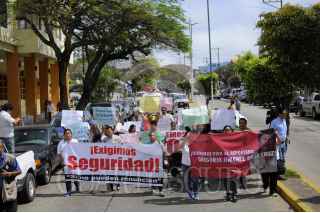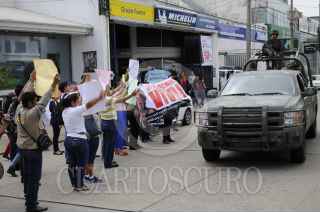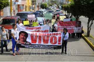 COATZACOALCOS, VERACRUZ., 07FEBRERO2014.- Por tercer día consecutivo, periodistas de la zona sur del estado marcharon por las principales calles de Coatzacoalcos para exigir la aparición con vida del reportero Gregorio Jiménez de la Cruz, secuestrado en días pasados. Los comunicadores aplazaron a las autoridades para realizar las investigaciones y dar con su paradero, de no ser así continuarán las movilizaciones de la prensa. FOTO: ÁNGEL HERNÁNDEZ / CUARTOSCURO.COM