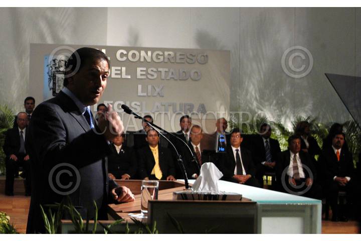 AGUASCALIENTES, AGUASCALIENTES 01DICIEMBRE2005.- Luis Armando Reynoso, gobernador de Aguascalientes rindio su informe de gobierno ante el Congreso Estatal en el teatro Aguscalientes. FOTO: Germán Romero/CUARTOSCURO.COM