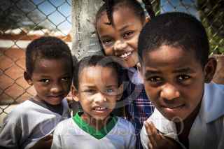 CARTAGENA. COLOMBIA 09FEBRERO2014: Niños del barrio Nelson Mandela sonríen a la hora de salir de la escuela. FOTO:RASHIDE /CUARTOSCURO.COM