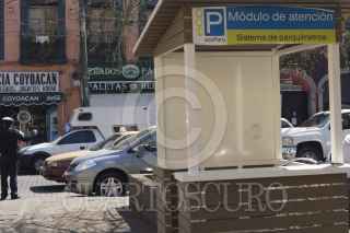 MÉXICO, DF., 10FEBRERO2014.- Este lunes inició el proceso de instalación de los parquímetros en el las calles aledañas al centro de la delegación Coyoacán, específicamente en el barrio Santa Catarina. Personal de la empresa Ecoparq realizó trabajos de medición sobre la calle de Francisco Sosa para calcular el espacio que será determinado para cada cajón. El costo por hora, una vez implementados los parquímetros, será de 8.00 pesos por hora. La Secretaría de Desarrollo Urbano y Vivienda (Seduvi) es quien coordina, en conjunto con la delegación, quien ha dispuesto dos módulos de atención para informar a los vecinos acerca del proyecto de la implementación de parquímetros en una de las zonas con mayor índice de turismo en la capital del país. FOTO: MARÍA JOSÉ MARTÍNEZ /CUARTOSCURO.COM