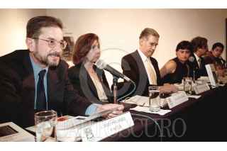 Carlos Garza Falla, Luz del Carmen Calderon, Diego Valadez, Nalia Tello Peon y José Antonio de la Peña, en la presentación del libro Deslinde: La UNAM a debate, en la casa Lamm.