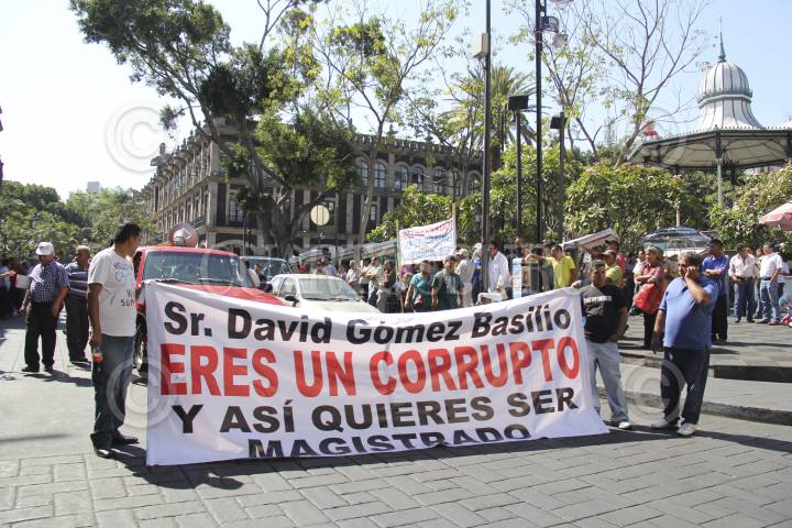 CUERNAVACA, MORELOS, 10FEBRERO2014.- Transportistas encabezados por Dagoberto Rivera Jaimes, se manifestaron en el centro de Cuernavaca hasta llegar a las oficinas del Tribunal de lo Contencioso Administrativo, manifestándose en contra de David Gómez Basilio, Secretario de Movilidad y Transporte. FOTO: PATRICIA MORALES/CUARTOSCURO.COM