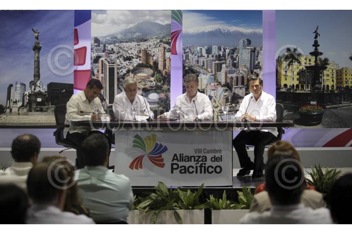 CARTAGENA DE INDIAS, COLOMBIA, 10FEBRERO2014.- Al concluir la VIII Cumbre de la Alianza del Pacífico, Ollanta Humala Tasso, Sebastián Piñera, Juan Manuel Santos y Enrique Peña Nieto, Presidentes de Perú, Chile, Colombia y México respectivamente, ofrecieron una conferencia de prensa conjunta. FOTO: PRESIDENCIA /CUARTOSCURO.COM