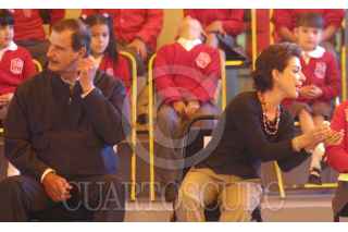 MEXICO, D.F., 01DICIEMBRE2005.- Vicente Fox Quesada, Presidente de la República y Marta Sahagún, esposa del mandatario, encabezaron el acto 5 Años Cumpliendo con la Educación, en la escuela Mtro. José Mariano Pontón. FOTO: Moisés Pablo/CUARTOSCURO.COM