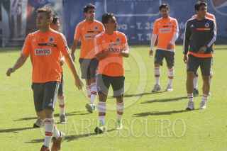 ZAPOPAN, JALISCO, 11FEBRERO2014.- Hoy en las instalaciones de Verde Valle el equipo de las Chivas de Guadalajara durante la practica matutina en donde se preparan para el compromiso de la jornada 7 del Torneo Clausura 2014 de la Liga MX. Al final del entrenamiento los atacantes Aldo De Nigris y Omar Bravo, ofrecieron Conferencia de Prensa. FOTO: FERNANDO CARRANZA /CUARTOSCURO.COM