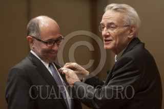 MÉXICO, D.F., 11FEBRERO2014.- Héctor Fix-Zamudio, integrantes del Colegio Nacional, durante la ceremonia de ingreso de José Ramón Cossío, ministro de la Suprema Corte de Justicia de la Nación, a este colegiado. FOTO: MOISÉS PABLO /CUARTOSCURO.COM