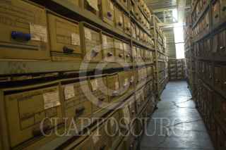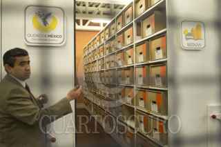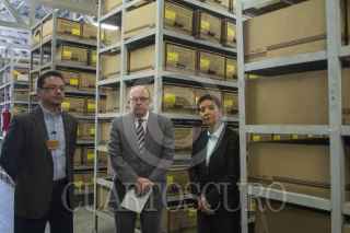 MÉXICO, D.F., 12FEBRERO2014.- Simón Neumann Ladenzon, secretario de Desarrollo Urbano y Vivienda, y Luis Antonio García Calderón, director general de Administración Urbana, realizaron una visita al Archivo de Concentración de la SEDUVI en la calzada de Camarones de la Deegacion Azcapotzalco para apreciar la tecnica de archivación y las medidas de seguridad con las que se cuenta en el edificio. FOTO: ENRIQUE ORDÓÑEZ /CUARTOSCURO.COM