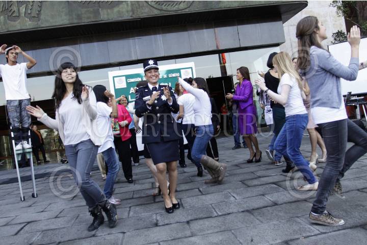 MÉXICO, DF., 12FEBRERO2014.- Al termino de la conferencia de prensa sobre el evento "Un billón de pie” organizada por la Comisión de Igualdad de Género, se realizo una coreografia en el frontispicio de la Cámara de Diputados. FOTO: RODOLFO ANGULO /CUARTOSCURO.COM