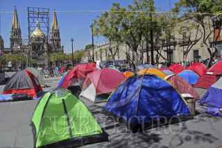 GUADALAJARA, JALISCO, 12FEBRERO2014.- Docentes adheridos a la Asamblea Magisterial Democrática de Jalisco continúan con la protestas a las afueras del Palacio Legislativo, en donde piden un diálogo con los líderes de las bancadas de los diputados para hacer patente su postura con respecto a lo que ellos dicen es la entrada en vigor inminente de las leyes secundarias en materia de reforma educativa en el Estado. Desde ayer en un plantón en la Plaza de la Liberación, hasta que les den una solución. FOTO: FERNANDO CARRANZA GARCÍA /CUARTOSCURO.COM