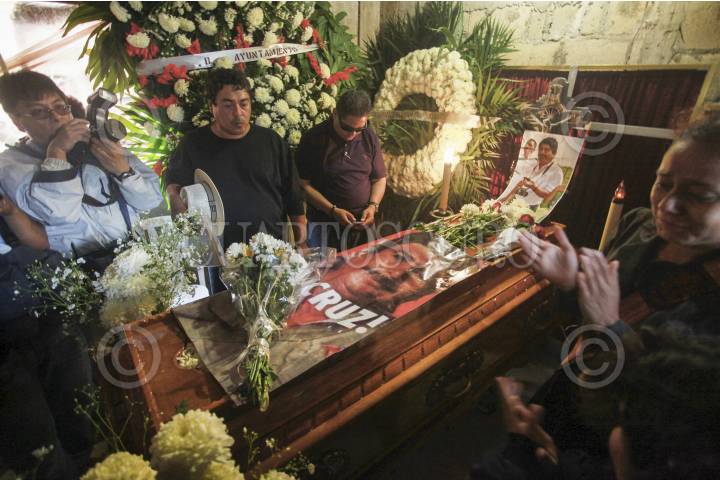 COATZACOALCOS, VERACRUZ, 12FEBRERO2014.- Fueron velados los restos del periodista de nota roja, Gregorio Jiménez, en una casa de la congregación de Villa Allende. El periodista fue encontrado sin vida en una fosa clandestina después de haber desaparecido el pasado 05 de febrero. Las autoridades estatales informaron que las indagatorias coinciden con un asesinato derivado de problemas personales. FOTO: FÉLIX MÁRQUEZ / CUARTOSCURO.COM