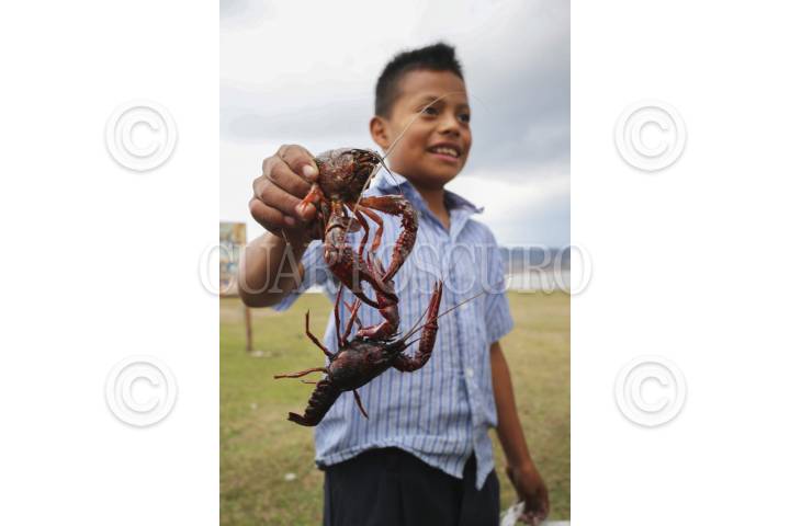 VENUSTIANO CARRANZA, CHIAPAS13FEB2014.- Niños y adultos participan en la pesca de langostinos en la laguna de Aguacatenco, municipio cercano a San Cristóbal de las CasaS, para su respectiva venta. La pesca es una de las principales actividades económicas de la región. FOTO: ELIZABETH RUIZ /CUARTOSCURO.COM