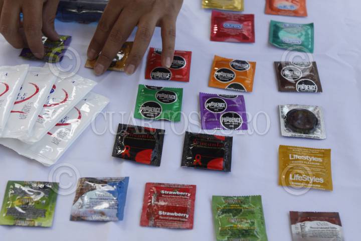 MÉXICO, D.F., 13FEBRERO2014.- Jóvenes muestran su interés en aprender acerca y sobre su sexualidad en la Feria "Coge con Ciencia Usa Condón" en la Glorieta de los Insurgentes. Los expositores invitan a la sociedad en general sobre la importancia de usar este método para prevenir embarazos no deseados y enfermedades de transmisión sexual. Organizaciones sociales exigieron que el condón sea incluido en la canasta básica. FOTO: MOISÉS PABLO /CUARTOSCURO.COM