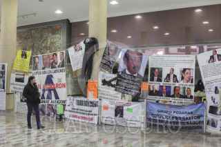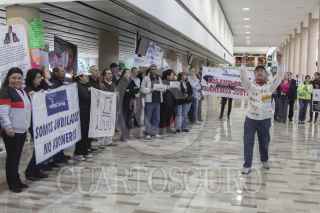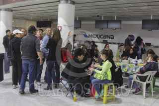 MÉXICO, DF., 13FEBRERO2014.- Jubilados de la extinta Mexicana de Aviación realizaron una protesta en la Puerta 4 del Aeropuerto Internacional de la Ciudad de México (AICM). Exigieron a la Secretaría de Comunicaciones y Transportes (SCT) y a la Secretaría de Gobernación (Segob) se entreguen las jubilaciones correspondientes a los 725 jubilados que continúan sin pensión desde hace tres años. FOTO: SAÚL LÓPEZ /CUARTOSCURO.COM