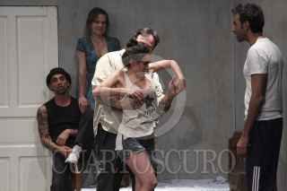 MÉXICO, D.F., 13FEBRERO2014.- Los actores Nailea Norvind, Alejandro Calva, Arturo Barba, Carlos Valencia y Andrea Guerrero, durante la presentación de la obra teatral Los Corderos realizada en el Tetaro Benito Juarez. FOTO: SAÚL LÓPEZ /CUARTOSCURO.COM