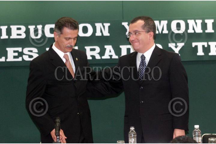 MEXICO, D.F., 02DICIEMBRE2005.- Eduardo Garzón, Director General de Radio y TV de la SEGOB y Enrique Adolfo Aranda, Subsecretario de Normatividad de Medios de la SEGOB, durante la inauguración del Centro de Distribución y Monitero Digital de Señales de Radio y Televisión. FOTO: Moisés Pablo/CUARTOSCURO.COM