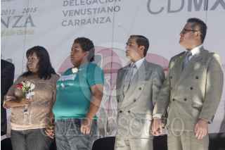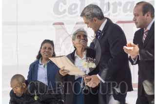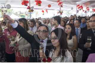 MÉXICO, DF., 14FEBRERO2014.- Miguel Ángel Mancera, jefe de gobierno capitalino, y Manuel Ballesteros, delegado de Venustiano Carranza, presidieron el matrimonio colectivo de más de 2 mil parejas quienes contrajeron nupcias en la explanada delegacional. Miguel Ángel Cámara, jefe de Xochimilco y Elizabeth Mateos, del mismo cargo en Iztacalco, acudieron al evento, mismo que estuvo amenizado por el cantautor yucateco Armando Manzanero. FOTO: MARÍA JOSÉ MARTÍNEZ /CUARTOSCURO.COM