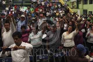 OAXACA, OAXACA, 14FEBRERO2014.- Integrantes de la Coordinadora Nacional de los Trabajadores de la Educación (CNTE) pertenecientes a 22 secciones de todo el país, acudieron este fin de semana de la ciudad de Oaxaca donde se desarrolla el tercer Congreso Nacional Extraordinario de la CNTE, donde definirán la ruta de la lucha magisterial en contra de la reforma educativa. En la imagen Rubén Núñez, secretario general de la sección 22 encabezó los trabajos de este viernes. FOTO: ARTURO PÉREZ ALFONSO/CUARTOSCURO.COM