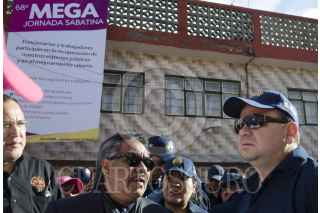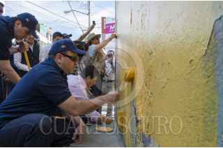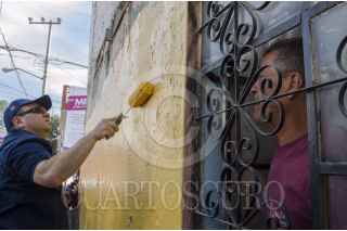 MÉXICO, DF., 15FEBRERO2014.- Jesús Rodríguez Almeida, titular de la Secretaría de Seguridad Pública del Distrito Federal (SSPDF), acompañado del diputado por Gustavo A. Madero, Victor Hugo Lobo, acudieron a la 68 Mega Jornada Sabatina "tu ciudad te requiere", en donde 200 elementos de seguridad capitalina realizaron labores de pintura en algunas fachadas y banquetas de la calle Cabo Hornos, en la colonia Gabriel Hernández. La delegación Gustavo A. Madero, ubicada al norte de la capital, se encuentra en el quinto lugar de las entidades con mayor pobreza dentro de la capital, reveló un estudio publicado por el Consejo Nacional de Evaluación de la Política de Desarrollo Social (Coneval) en 2010, con un 30.7 por ciento de habitantes que viven en situación de marginalidad. FOTO: MARÍA JOSÉ MARTÍNEZ /CUARTOSCURO.COM