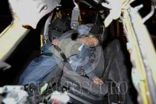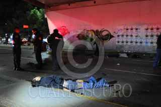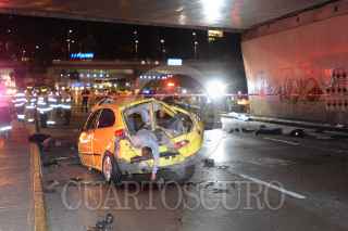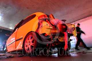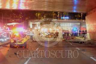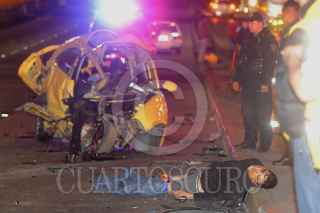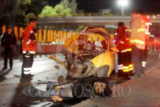 MÉXICO D.F; 16FEBRERO2014.- Cuatro Jóvenes pierden la vida, al impactar el auto Seat en el que viajaban contra la barra de contención y la base de un puente en Circuito Interior, en la parte baja del puente de Los Leones en la entrada al Bosque de Chapultepec. FOTO: LUIS CARBAYO /CUARTOSCURO.COM