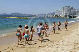 ACAPULCO, GUERRERO, 17FEBRERO2014.- Turistas nacionales y extranjeros se dieron cita en las playas de Icacos y turismo que vienen llegando al puerto con todo y maletas. FOTO: BERNANDINO HERNÁNDEZ /CUARTOSCURO.COM