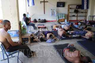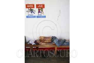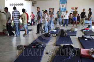 ARRIAGA, CHIAPAS, 17FEBRERO2014.- Migrantes centroamericanos principalmente de Honduras, El Salvador , Guatemala y Nicaragua descansan en la casa del migrante "Hogar de la Misericordia", en donde pueden dormir, bañarse y comer mientras esperan el tren para continuar su viaje hacia la frontera norte. FOTO: ELIZABETH RUIZ /CUARTOSCURO.COM