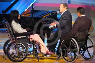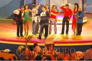 MÉXICO, D.F. 03DICIEMBRE2005.- Omar Chaparro y Adriana Rivera Melo durante su participación en el teletón 2005 donde se realizó un concurso titulado "Bailando por el teletón". FOTO: Iván Stephens/CUARTOSCURO.COM
