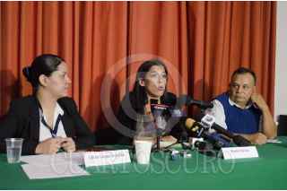 MÉXICO, DF., 18FEBRERO2014.- En víspera de la Cumbre de Líderes de América del Norte, el Centro de los Derechos del Migrante (CDM) exigió justicia en representación de los miles de migrantes que trabajan bajo condiciones ilegales de trabajo en territorio estadounidense. Su representante legal, Jessica Stander y Lilián López Gracián, coordinadora del Área de Educación, Promoción y Desarrollo de Liderazgo del CDM, demandaron que ambos países acuerden una reforma migratoria que ampare los derechos de los trabajadores migrantes con visas H2B e instaron a que los mandatarios Enrique Peña Nieto, Barack Obama y el ministro canadiense, Stephen Harper, actúen para proteger los derechos de aquellos que cruzan la frontera en busca de oportunidades de trabajo. FOTO: MARÍA JOSÉ MARTÍNEZ /CUARTOSCURO.COM
