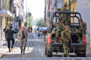 TOLUCA, EDOMEX, 18FEBRERO2014.- En el centro histórico de la ciudad se ha montado un fuerte operativo de seguridad por parte de la policía Federal, ejército y cuerpos policiales estatales por la visita de los mandatarios de Canadá, Estados Unidos y México, quienes participarán en la cumbre de Líderes del Norte. FOTO: MOISÉS PABLO /CUARTOSCURO.COM