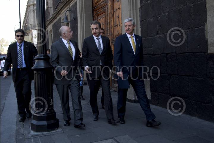 MÉXICO, D.F.19FEBRERO2014.- José Luis Rodríguez Zapatero, expresidente del gobierno de España, acompañado de José Ramón Narro Robles rector de la UNAM y de Eduardo Bárzana García, secretario General de UNAM, caminaron por las calles del centro hasta el Palacio de Minería donde se llevaría acabo la inauguración de la Feria Internacional del Libro. FOTO: GUILLERMO PEREA /CUARTOSCURO.COM