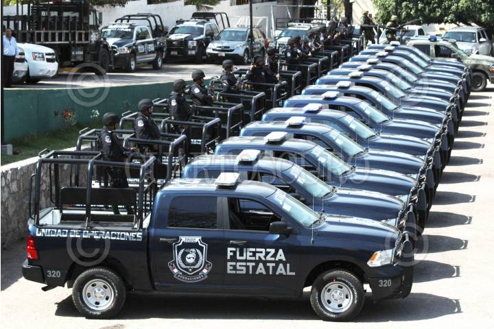 CHILPANCINGO, GUERRERO, 19FEBRERO2014.- El gobernador del estado, Ángel Aguirre Rivero, hizo entrega de equipamiento, vehículos y armamento a la policía estatal con una inversión de 24 millones, en donde anunció la incorporación de cien elementos para conformar a la policía rural en la sierra de Guerrero. FOTO: JOSÉ I. HERNÁNDEZ /CUARTOSCURO.COM