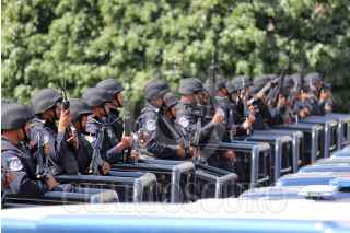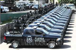 CHILPANCINGO, GUERRERO, 19FEBRERO2014.- El gobernador del estado, Ángel Aguirre Rivero, hizo entrega de equipamiento, vehículos y armamento a la policía estatal con una inversión de 24 millones, en donde anunció la incorporación de cien elementos para conformar a la policía rural en la sierra de Guerrero. FOTO: JOSÉ I. HERNÁNDEZ /CUARTOSCURO.COM