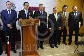 MÉXICO, D.F., 20FEBRERO2014.- El diputado Silvano Aureoles, coordinador de la bancada del PRD, ofreció una conferencia de prensa para dar a conocer a los miembros del Comité de Selección de los Consejeros del INE. A la conferencia estuvo presente Luis Alberto Villareal, coordinador del PAN, Manlio Fabio Beltrones, coordinador de los diputados del PRI y Manuel Añorve, diputado federal. FOTO: CUARTOSCURO.COM