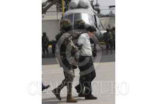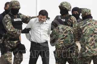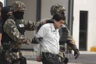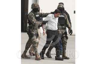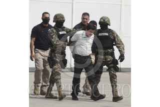 MÉXICO, D.F., 22FEBRERO2014.- Joaquín “El Chapo Guzmán”, líder del cártel de Sinaloa y uno de los delincuentes más buscado por Estados Unidos y México, fue detenido por la Marina Armada de México en Mazatlán, Sinaloa, confirmó en conferencia de prensa el procurador de la República, Jesús Murillo Karam. El presunto delincuente fue presentado en el hangar de Secretaria de Marina en el aeropuerto Internacional de Ciudad de México. FOTO: SAÚL LÓPEZ /CUARTOSCURO.COM