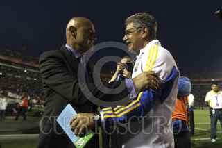 MONTERREY, NUEVO LEÓN, 22FEBRERO2014.- . Los directores técnicos José Sanchez del Veracruz y Ricardo Ferreti de los Tigres de la UANL se saludan al inicio del juego, en el estadio Universitario del partido correspondiente a la jornada 8 de la Liga MX. FOTO: GABRIELA PEREZ MONTIEL /CUARTOSCURO.COM