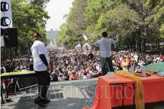 MEXICO, D.F., 23FEBRERO2014.-Beakman, el excéntrico científico protagonista de un programa de televisión de los noventas, se presentó esta mañana en el bosque de Chapultepec ante aproximadamente seis mil espectadores de todas la edades, en una divertida clase de ciencias, en la que explicó diversos fenómenos cientificos de una manera sencilla y amena. Esta fue la tercera de sus presentaciones en la Ciudad de México, luego de haberse presentado en días pasados en el Museo de Ciencias Universum, de la UNAM, en el marco de los festejos por el 75 aniversario del Instituto de Física de dicha institución. Entre los asistentes a la presentación se encontraban jóvenes estudiantes de ciencias que fueron inspirados por este personaje para decidirse a estudiar algunas áreas de las ciencias. FOTO: DAVID POLO /CUARTOSCURO.COM